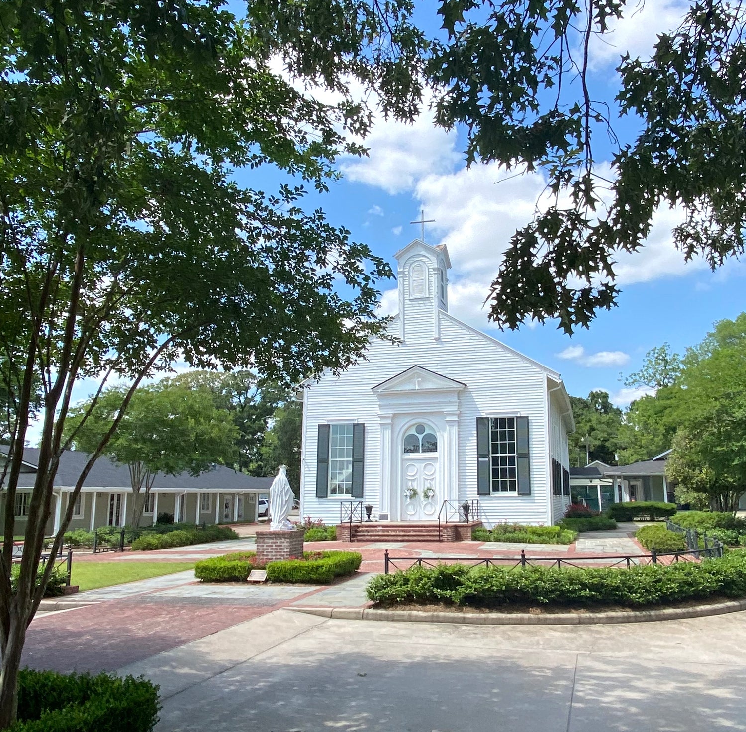 Our Lady of Mount Carmel Catholic Church is located in St. Francisville, LA. Our beautiful campus sits on a hilltop overlooking Bayou Sara. The historic church and landscape already bring people "up the hill" and we hope to attract even more pilgrims with our gift shop.